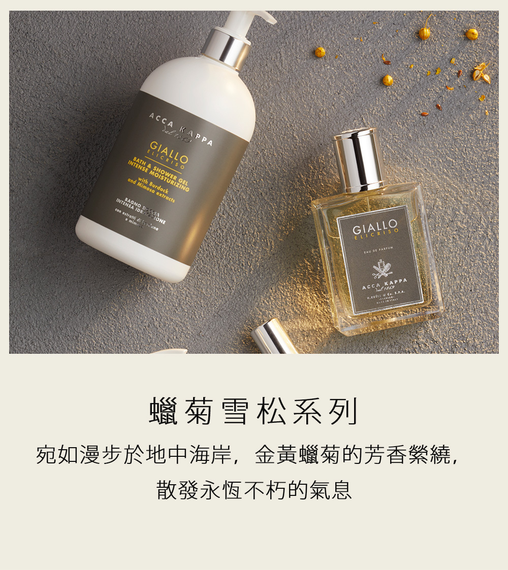 蠟菊融合了紫羅蘭葉、白胡椒、肉豆蔻和雪松木的香氣,營造出溫暖又深具花香的氛圍。能帶來提神效果,讓人充滿活力,使肌膚在保持清爽水潤的同時也維持自然的平衡。本產品富含多種活性成分,並添加了牛蒡和含羞草萃取物,具有天然的抗氧化、潔淨和淨化功效。