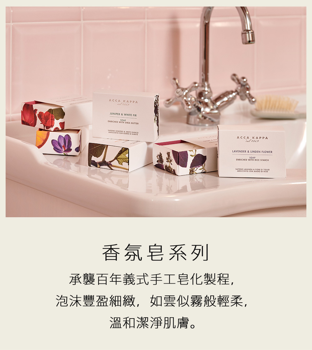 繁複的三重冷製工法,完整保留植物成分的天然活性,造就如乳霜般豐潤細緻的質地。每一次使用,都是一場溫柔的肌膚饗宴,豐盈的泡沫輕柔地包覆肌膚,洗後肌膚水潤柔嫩,散發自然健康光澤。此款沐浴皂不僅能溫和潔淨肌膚,更是一段療癒身心的儀式,適合所有膚質。