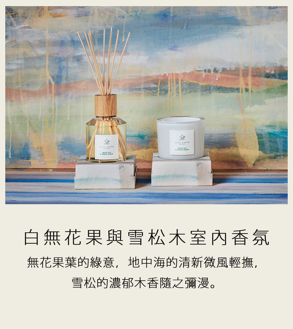 香氛結合了無花果葉的綠意與豐盈果香,地中海的清新微風輕撫,雪松的濃郁木香隨之環繞。